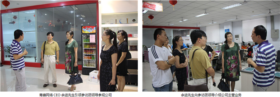 青峰網絡科技CEO余進先生引領參訪團領導參觀公司辦公區,在參訪過程中余進先生與參訪團領導進行了親切而友好的交流,并向參訪團領導介紹了公司的主營業務、企業文化,當得知青峰網絡從新鄉市一家名不見經傳的小網絡公司,一路過關斬將,經過十一年的持續發展,最終成就新鄉市信息產業界大企業,業務覆蓋新鄉、焦作、安陽、洛陽、浙江金華五市時,參訪團一行領導無不由衷的發出了贊嘆。