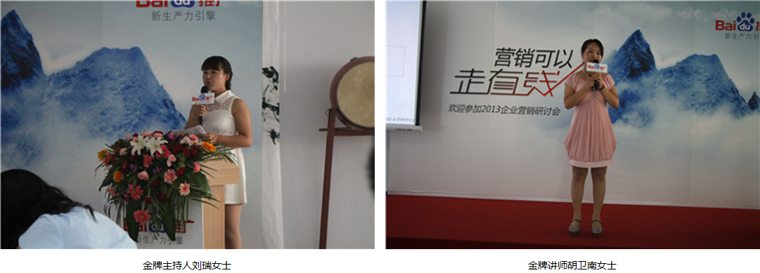 下半場嘉賓對話環(huán)節(jié),是本次會議的一大亮點,會議特別邀請了新鄉(xiāng)本土的兩家百度推廣老客戶-新鄉(xiāng)宇仁化學有限公司楊總、新鄉(xiāng)市通用電機有限公司周總現身說法,她們用最樸實的語言講述著與百度推廣的故事,當講到百度每年給他們帶來的收益時,臉上的笑容都是溢于言表。通過她們的講述,使參加本次會議的新客戶對百度推廣有了更深的了解,也更加堅定了他們與百度合作,加入百度推廣的信心。