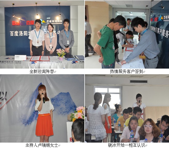 2013年6月19日下午兩點,網站客服VIP俱樂部會議在洛陽市青峰網絡科技“青玉案”會議室召開。下了一夜的大雨在會議召開的上午終于放晴了,雨過天晴帶來好勢頭。客戶們不僅都如約前來,多數都提前到來,對我們客服的工作極度支持與配合!同時這份配合也是對我們客服人員工作的肯定。