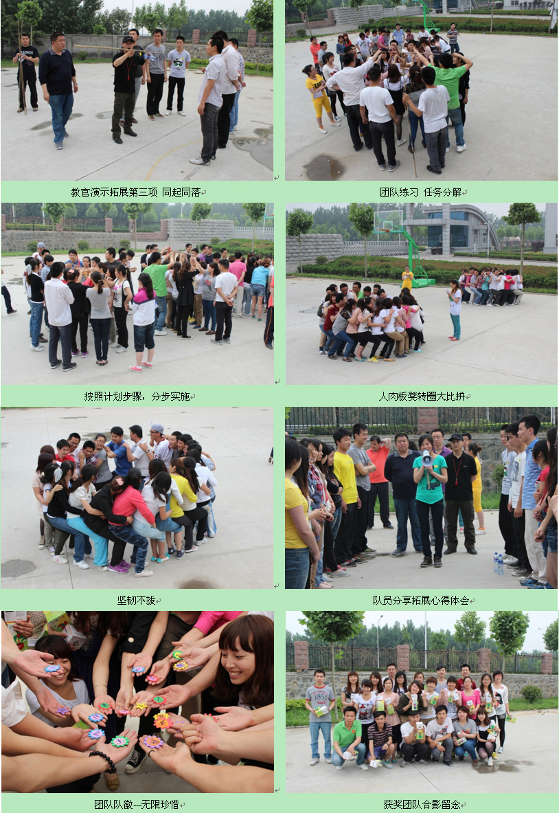 60個人依次報數,需要多久?20秒!20個人同起同坐需要多久?1秒19!一個個拓展項目在考驗著員工、團隊,一個個驚喜呈現在我們目前!每一個員工在感受著紀律、責任、分擔、堅持、配合、計劃、與分享!每一個人都在默默承受、付出!每一個人都在全力以赴