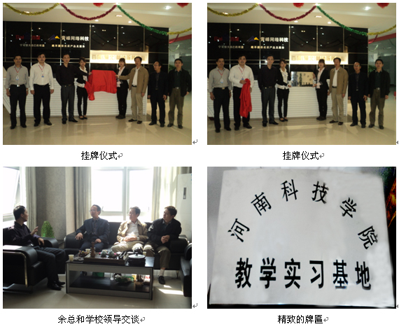 2011年9月22日,新鄉(xiāng)市青峰網(wǎng)絡(luò)科技有限公司隆重舉行“河南科技學(xué)院教學(xué)實(shí)習(xí)基地”掛牌儀式,青峰網(wǎng)絡(luò)公司總經(jīng)理余進(jìn)、河南科技學(xué)院教務(wù)處常務(wù)副處長(zhǎng)趙良、信息工程學(xué)院院長(zhǎng)趙明富等學(xué)校領(lǐng)導(dǎo)參加了掛牌儀式。