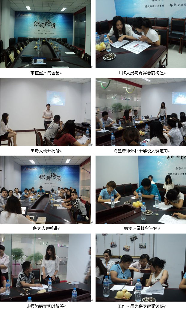 本次活動(dòng)使嘉賓切實(shí)感受到了人群定向的巨大魅力,幫助嘉賓在網(wǎng)絡(luò)營銷的道路上又上了一個(gè)新臺(tái)階。最后是嘉賓營銷經(jīng)驗(yàn)分享,孔子曰:“三人行,必有我?guī)煛保椌W(wǎng)論道活動(dòng)主要是提供一個(gè)平臺(tái),讓更多的企業(yè)家來分享自己的成功與失敗,大家可以彼此借簽、彼此學(xué)習(xí),少走彎路,切實(shí)幫助到每一個(gè)嘉賓。