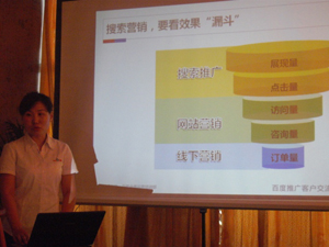 2010年7月21日,新鄉市青峰網絡科技有限公司:百度實效客戶培訓會議——“網絡產品效果評估”在沁園茶樓成功舉行。客戶在現場積極提問,仔細分析,認真記錄,可以看得出目前互聯網效果評估對企業的重要性,也表明了網絡對于企業發展的重要程度?,F場通過精彩紛呈的講演和優秀的案例分析,向客戶講解如何對網絡產品進行有效的效果評估,避免在互聯網中出現的誤區,讓大家做一個明白的消費者。