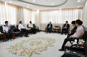 | 百度領(lǐng)導(dǎo)迎接楊副市長到來 | 新鄉(xiāng)市政府領(lǐng)導(dǎo)與百度領(lǐng)導(dǎo)及青峰網(wǎng)絡(luò)總經(jīng)理 會前在貴賓室洽談 | |