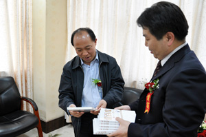 | 百度服務(wù)管理部任總監(jiān)與副市長楊書廷先生會前交談 | 百度服務(wù)管理部任總監(jiān)向副市長楊書廷先生 贈送《壹百度》 | |