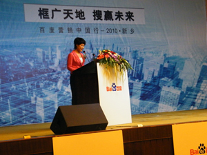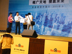 2010年5月14日,由全球中文搜索引擎百度舉辦的“營銷中國行”大型論壇在新鄉舉行。本次百度“營銷中國行”要走遍全國一百多個城市,將匯聚近十萬大中小企業和聯盟伙伴共同參與,旨在探討在當今全球經濟復蘇的大背景下,如何通過創新的網絡營銷方式來推動企業的發展和地方經濟的繁榮。