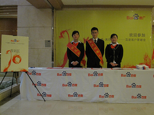 恭迎嘉賓 繁忙的簽到區 主持人致開場詞 嘉賓簽名留念 主講人郭凡先生做精彩主題演講 客服表演優美舞蹈 小品“開鎖” 優秀客戶帶來街舞表演 游戲“聲名遠揚” 游戲“圓聚” 嘉賓代表發言 客服齊唱“明天會更好” 會議最后在一片歡聲笑語中結束,通過這次會議,將客戶與百度的距離拉的更近了,更是增強了客戶對百度信任。面對已經到來的2010年,百度仍將不負眾望,努力回報廣大客戶的支持與信任。相信眾多的中小企業也會繼續把百度當做堅定的長久的合作伙伴,在新的一年里和百度一起蓄勢待發,再創輝煌!