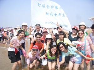 為了慶祝青峰全體員工在專業(yè)版上線之后的出色表現(xiàn),為了讓在09Q2中努力拼搏的戰(zhàn)友們好好放松一下,為了在09畫上一個圓滿的逗號,7月3日下午在余進總經(jīng)理的帶領下從新鄉(xiāng)啟程去游覽那風景秀麗、氣候宜人、物產(chǎn)豐富的日照。夕陽、海風、螃蟹、燒烤――到日照吃海鮮去。歷經(jīng)了長長的9個小時,我們到達了因“日出初光先照”而得名的日照。