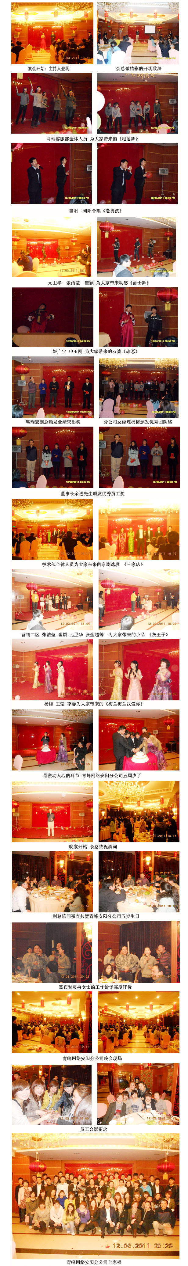 2011年3月12日,安陽市飛鷹賓館宴會廳充滿了歡聲笑語,安陽青峰網絡公司迎來了自己五歲的生日。五色的彩虹,托起了人間的美好;五彩的浪潮,卷起了大地的歡歌;五年的耕耘,釀造了人間的笑容;五年的付出,迎來了嶄新的收獲,相信安陽青峰人在2011年一定能再接再勵,一路高歌!再創造安陽新的輝煌!
