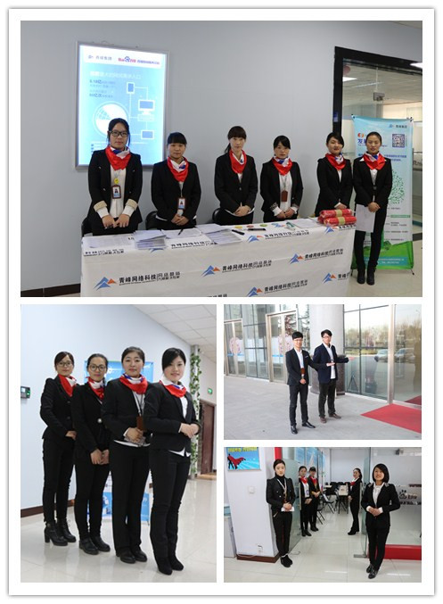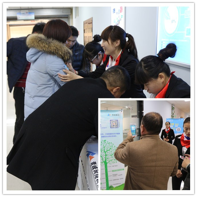 工作人員為每位到場的客戶貼上青峰集團的標簽并幫助客戶掃描微信獲得第一手網站咨詢